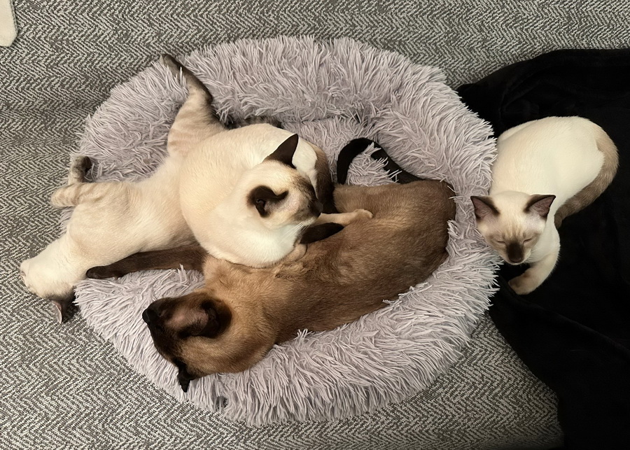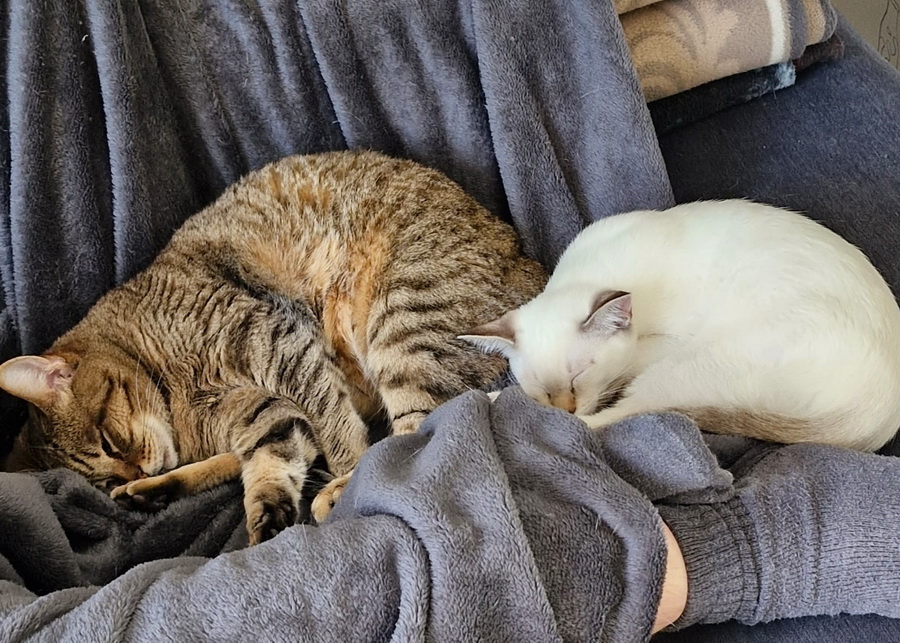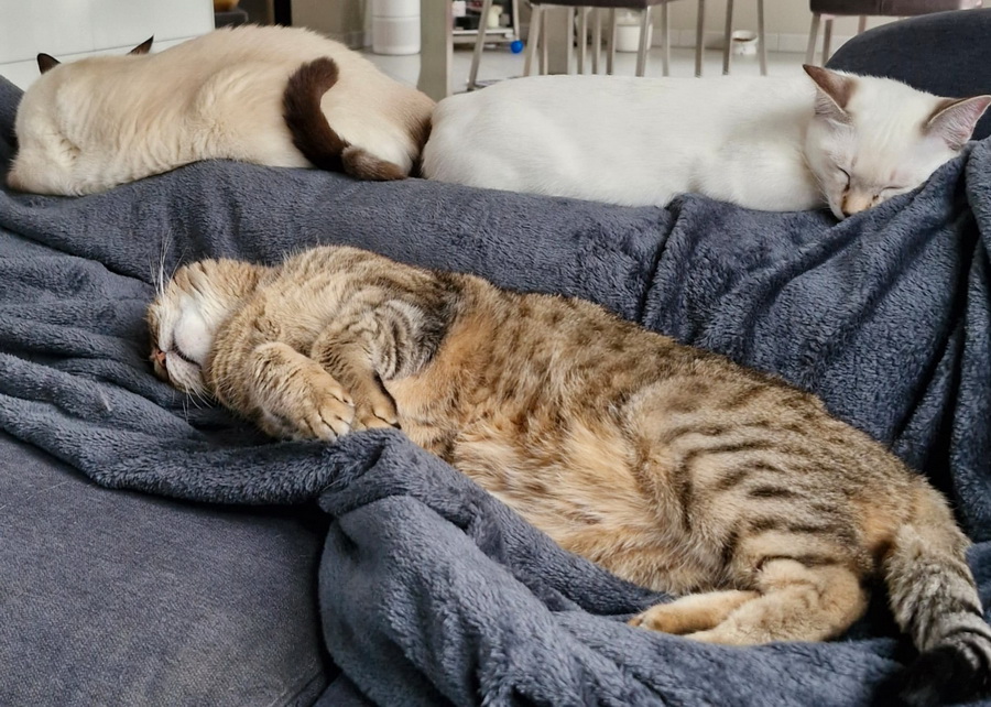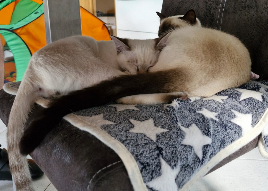 Orik ist ein Troubadour. Er muss immer lautstark allen mitteilen, dass er ausgeschlafen hat. So wissen alle Bescheid 😉 Mit ihm wird Stube kehren zur oplympischen Disziplin. Olli ist der Muckimann. Unser Kraftprotz muss alles erklettern, sitzt aber auch sehr gerne auf dem Schoß und lässt es sich da gut gehen….