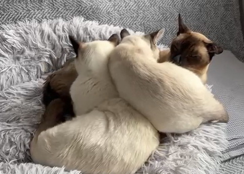 Nach 18 Monaten Pause hat unsere Finni den diesjährigen Wurf von unserem eigenen Kater bekommen. Wie immer, hat sie die Geburt perfekt gemeistert und zwar so routiniert, dass Frauchen erst beim zweiten Baby gemerkt hat, dass die Geburt schon im Gange ist, Und das, obwohl die Wurfbox direkt unter dem Schreibtisch stand, auf dem Frauchen gearbeitet hat. Es ist ein ganz bezaubernder Trupp geworden.